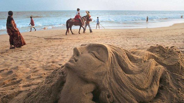 Lying to the east of the town is Puri’s famous beach on the Bay of Bengal. The surf mostly breaks ahead of the beach and the foam-flecked waves gently roll on to the golden sand. The main beach extends north to south — between Chakratirtha and Swargadwar. By day, a large crowd gathers on the beach to bathe and swim in the sea. Although the surf is relatively safe, it is always better to remain on the side of caution. In the evening, a part of the beach turns into a fairground, with kiosks selling snacks and souvenirs. The hours of sunrise and sunset also attract a lot of viewers. You may catch sand artists at work on the beach. The Beach Road is choc-a-bloc with hotels, restaurants and shops, the area around Swargadwar being the most crowded.