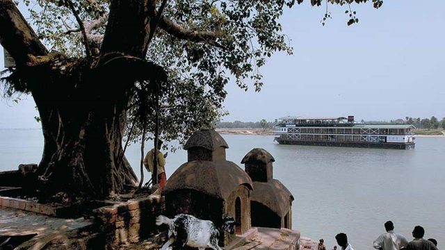 After it leaves Kolkata, the ship first stops at the former French colony of Chandernagore, followed by Bandel, one-time Portuguese settlement where the Bandel church and the Hooghly imambara stand close together. The intricately designed terracotta temples at Kalna and brass and copper work at Katwa are the next attractions. At Murshidabad, guests visit heritage structures dating back to the time of Siraj-ud-Daulah, the last independent Bengal Nawab. There are ancient terracotta temples to visit at Baranagar as also the local Farakka market. A mosque dating back to Akbar’s time is the prime draw at Rajmahal once the ship enters Jharkhand, after which a visit to the ruins of the Vikramshila University in Bihar is on the agenda. Yoga school and ancient monuments are the attractions at Munger. Guests are then taken to Barh, from where buses take them to Buddhist pilgrimage spots like Bodh Gaya and Rajgir. In Patna, there’s a tour of the museum and Golghar, a granary built after the Bengal famine of 1770. Dolphins are often visible along this route, and the area around Buxar is particularly noted for wildlife sightings. From there, the ship travels to Varanasi, via Gazipur.