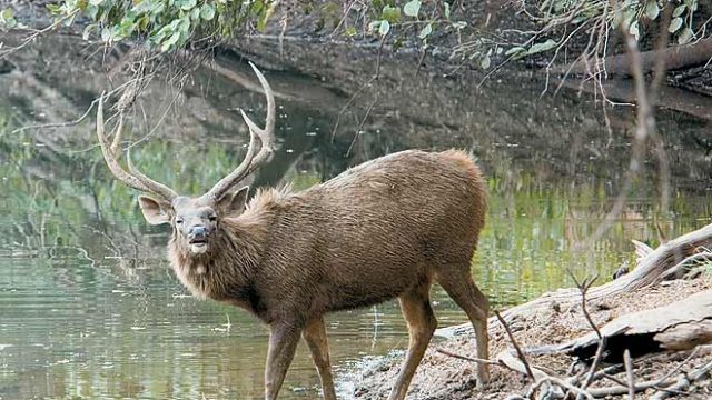 There is constant talk about having spotted a tiger or having tracked one, be it while watching cormorants dry their wings on a bare tree in the middle of Rajbag Lake, or having spotted a deer peeping through the window of a ruin far on the other bank. But if you are lucky you will see the mother tigress beginning her languid amble towards you, or making her way across a sliver of land in the water stopping just a stone’s throw from your parked vehicle, crouched down and drinking. You might also only see mere pugmarks. Spotting a tiger is, hence, contingent, primarily on your luck.