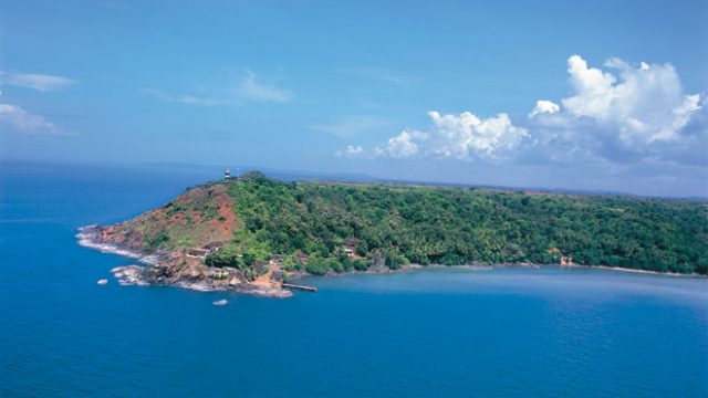 About 3 km from the town and near the jetty is Vengurla’s lighthouse. It is perched on a small plateau atop a hill, and offers a spectacular view, with the ocean below stretching far to the horizon; the jetty and its boats; the gorgeous palm-fringed coastline to the left; and a creek far away trailing out to the sea. To the right is a sheer drop down to the sea past jagged cliffs. To the northwest are the Vengurla Rocks, also called Burnt Islands, which were an important pointer for seafarers in ancient times.