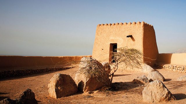The fort is inconspicuous, to say the least. We climbed the stairs as the sun set, and at each bend saw the surrounding hills being painted and repainted in a different blend of light and colour. We reached the top, and that’s when it hit us—Dhayah is in the middle of an oasis—a lush land settled in for the past five millenniums. The British cannons did turn it into a ruin in 1819, but it was restored to become RAK’s only surviving hilltop fort. There’s also an inn with a shop below—my key purchases there included a strawberry-flavoured Fanta, the super-sweet fard variety of dates, and the very dry lulu variety.