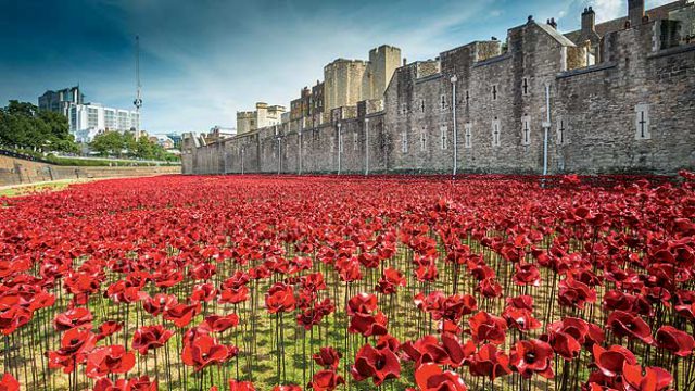 Perhaps the most voluble expression of Britain’s intent is the installation of 8,88,246 ceramic poppies at the Tower of London. Called Blood Swept Lands and Seas of Red, each of these crimson poppies is meant to serve as a symbol of remembrance for a fallen British or colonial soldier.