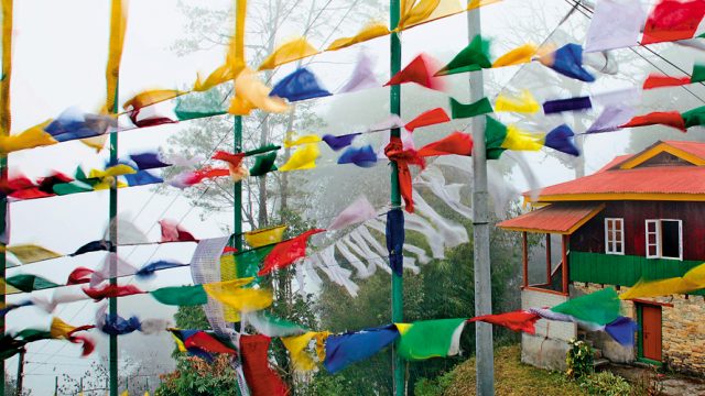 Besides a few swanky hotels, Yuksom is still a village. The oldest monastery in Sikkim, Dubdi, is situated on a hillock above the village. Built in 1701 by the followers of the Nyingmapa sect of Buddhism, it’s also known as the Hermit’s Cell after its reclusive founder, the monk Lhatsun Namkha Jigme. A 45-minute uphill walk through dense forests leads to the monastery. A resting shed next to the path offers a picturesque view of Yuksom.