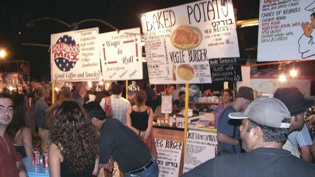 However, the best time of all to arrive is 5pm. The sun’s still up, and there’s a calm breeze flapping though the radiant hammocks and scarves. The vendors are less hassled, more willing to exchange pleasantries or even to offer a bargain. A few years ago, I would always pick up some tapestries and lively bedspreads. Now, I incline toward the more specialised items. At this time, the stools fronting the jewellery stalls are still open, and I have my pick of the loveliest earrings. I have three favourite stalls, the best of which is run by a British fellow who fashions beautiful earrings from coconuts and exotic-patterned shells. The greatest clothes stalls are also run by foreigners, ranging from unique pieces designed by the vendors to Bangkok T-shirts and surfing labels purchased abroad and sold here for double the price. You’ll find psychedelic shirts and hoodies, hats that glow in the dark, military-type gear that’s favoured by foot-stomping Israelis but you’ll also discover a range of pretty dresses, and those comic ninja boots (booties, I call them) with a separated section for the big toe.