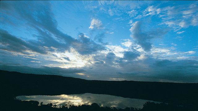 But the long years since then have seen Mother Nature slowly reclaiming what was hers. Water from underground springs liberated by the explosion flowed into the crater, covering the bottom of the basin with a lake. Rain, sand and wind erosion and erosion saw tortured rock being covered with sand. Seeds flew in, worked their roots into the soil, held it together, raised grass and shrubs and bushes and trees into the sky, and the earth healed.