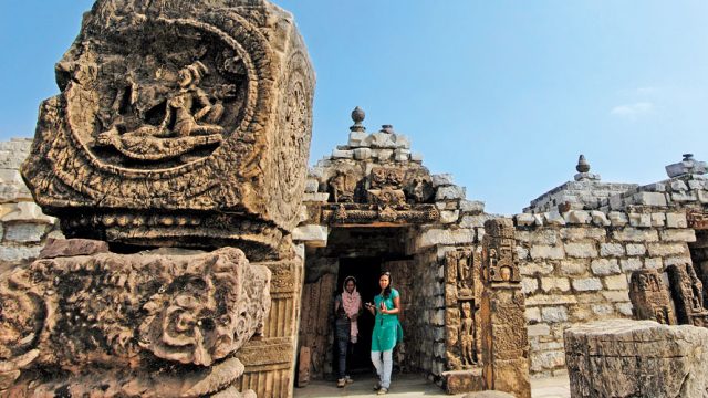 But local folklore says that it was a natural disaster that did this imperial city in. To learn more about this, I made my way to the grandest Saivite complex in town, the ruins of Surang Tila. A gigantic brick-and-stone edifice, the complex is notable for a steep and wide stone staircase that rises some 30 feet up from the ground to an elevated courtyard dotted with carved pillars and flanked by three shrines housing Shiva lingas and a shrine to Ganesha. These massive stairs gave an idea of the devastating earthquake that is said to have destroyed beautiful Sirpur, starting fires and crumbling temples and viharas alike. The two ends of the staircase fold up unnaturally—as if some irresistible force had tried to squeeze the entire edifice. The strength of the stones may have offered some resistance, but the stairs were permanently scarred and twisted. Sirpur’s glorious innings ended in devastation, but its memory