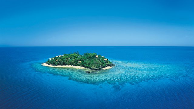 And on my first morning in the South Pacific I’m on my way to one of these desert island fictions. It’s an appropriately cinematic scene: we are in a rakish white motorboat, scudding across the sea. A large island looms ahead to the left but that’s not it. “That’s Beqa, home of the fire-walkers,” I’m told. “Most of our staff are from there.” Our prow is pointed at a barely discernable em-dash sandwiched between the contrasting blues of the sky and the sea. A lone puff of cloud hovers over it, an absurdly photogenic signboard.