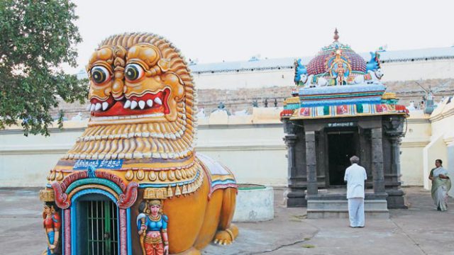 Over by Kumbakonam is where you head, when your troubles are literally in your head. The Thiruvidaimarudur shrine, 9km from the town, is renowned for granting relief from mental ailments. It is also the birthplace of flautist T.R. Mahalingam, presumably no relation to the patron deity of the same name, Sri Mahalinga Swamy.