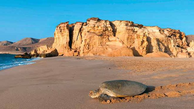 A hard wind smacks us squarely in the face and the Arabian Sea roars disapprovingly as we stumble along the beach in the silvery moonlight. We should be feeling thrilled. After all, we are in Oman, at the easternmost point of the Arabian Peninsula. But truth to tell, we’re more focussed on surviving the adventure without a twisted ankle. And hoping that we will meet the protagonists of this blustery show.