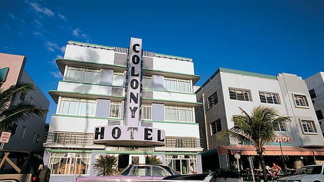 The Art Deco District of Miami, with its candy-coloured buildings and curvilinear architectural flourishes, its ocean-liner railings and portholes, is not so much a dense strip of fashionable shops, open-air restaurants and hotels but a fanciful time machine. A trip here is both a trip back in time as well as a visit to America’s future. Each one of these named buildings, from the Clevelander to the Tides Hotel, was erected between 1923 and 1943, and their diligent restoration in recent years allows a view of what glamour and wealth was like in America then: jazz and tall, fat automobile tail fins; tasteful pink and yellow walls and a wet, tropical heat pregnant with possibilities. The Deco District also looks forward, if not to the United States’ exact future, then at least one lingering possibility. Outside of NYC there are few places in the US as diverse as these few blocks just beside the Atlantic Ocean. Take away all the tourists and you would still be left with hundreds of Cubans, Haitians, Colombians, Nigerians, Brazilians and Israelis, the stray European fashion designer planting a paisley flag on what was once and remains the American Riviera. It goes without saying that it helps to be rich here (or, barring that, very, very beautiful and fit), but the beaches are free and the front doors of those whimsical deco-style buildings are always open and inviting. But a towel for the sand and an attentive eye for the details of buildings, of giant courtyards with amoeba-shaped pools, are all you need to be transported.