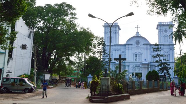 Many lefts and questions later, it materialises suddenly, a child’s brown pastel scrawl beyond yellow gates. Bandel Basilica, built in 1599-62, years after the Portuguese first colonised Hooghly — shiny brown-and-white granite and white stars on shiny, speckled stone. Bandel Church was destroyed by the Mughals and rebuilt in the17th century. It was beatified into its present state in 1988 — stained glass; many, many flickering candles; and no signs of age or history, though there is faith in plenty.
