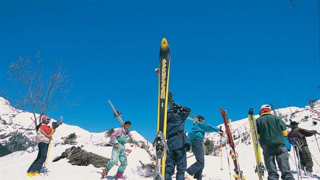 Solang Valley, located 13km northwest of Manali at an altitude of 8,000ft, has some of the best ski slopes in Himachal Pradesh. The vast snow-covered meadow here, which commands extensive views of the surrounding glaciers and snowcapped peaks, has gentle introductory slopes ideal for beginners. The Directorate of Mountaineering and Allied Sports (01902-250337, www.dmas.gov.in) in Manali runs a number of skiing courses at their Solang Ski Centre. They’ve also installed a ski lift at Solang for training purposes. A major attraction at Solang are the national-level Winter Games organised by the Himachal Pradesh government in February. Solang’s proximity to Manali means that it’s possible for you to stay in Manali and make day-trips to Solang. In Solang, your most comfortable option is the Solang Valley Resort (Rs 4,500-11,000; 01902-256134, www.solangvalleyresorts.com), located in the middle of an apple orchard.