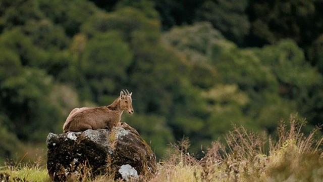 We scanned the rocky outcrops for Nilgiri tahr but there was no sign of them. Unwilling to return just yet, I glassed the rocks again and came to rest on three immobile rocks balanced on a large rocky slope. I excitedly gestured everyone over and pointed to the tahr. Maybe I was losing it entirely; they were rocks after all. Just then, the three basking rocks peeled away from the slope. Then others stood up on nearby rocks and the final tally was eight tahr (check). All of them made their way sedately across the grass, up the slope and over the crest. Elated at having seen the tahr and gaur, we gorged on a celebratory breakfast of idlis and coconut chutney. My trip was made and everything else could only be icing.