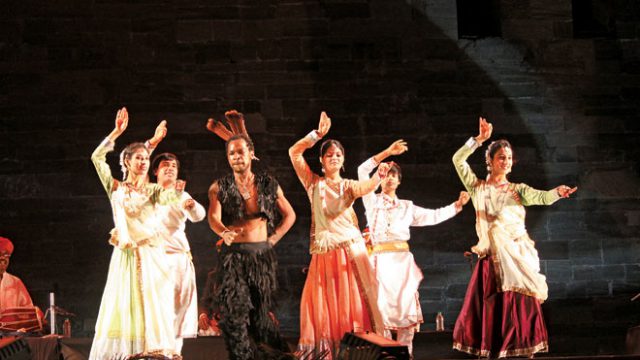 In the evening, however, the lake and the environs displayed a more poetic frame of mind. As the sun sank, Deveshi Sehgal sang robustly about oneness to much appreciation and applause. The night venue was the imposing Zenana Deodi at the fort… and the dance ensembles fully lived up to the standards the aged fort walls seemed to demand of them.