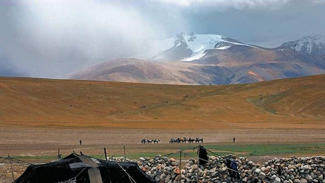 High above the pure blue waters of Tso Moriri in the Rupshu valley in eastern Ladakh, tower two of the region’s highest peaks — Lungser Kangri and Chamser Kangri.