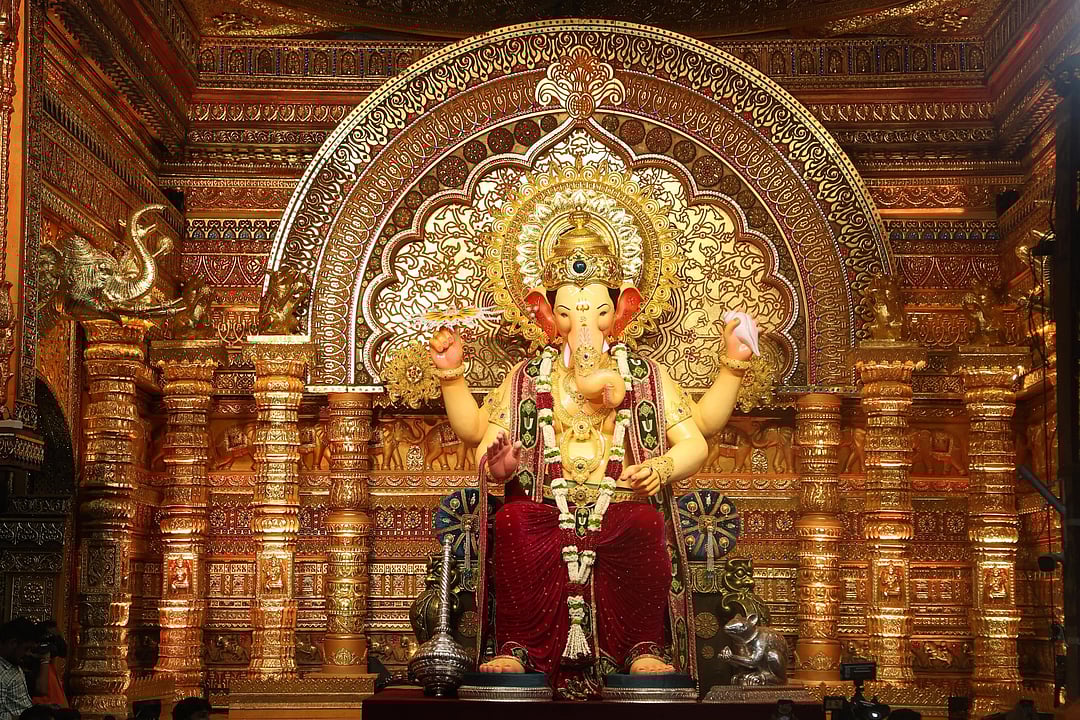 A shot of Lalbaugcha Raja in Mumbai Photo: @LoksattaLive/x