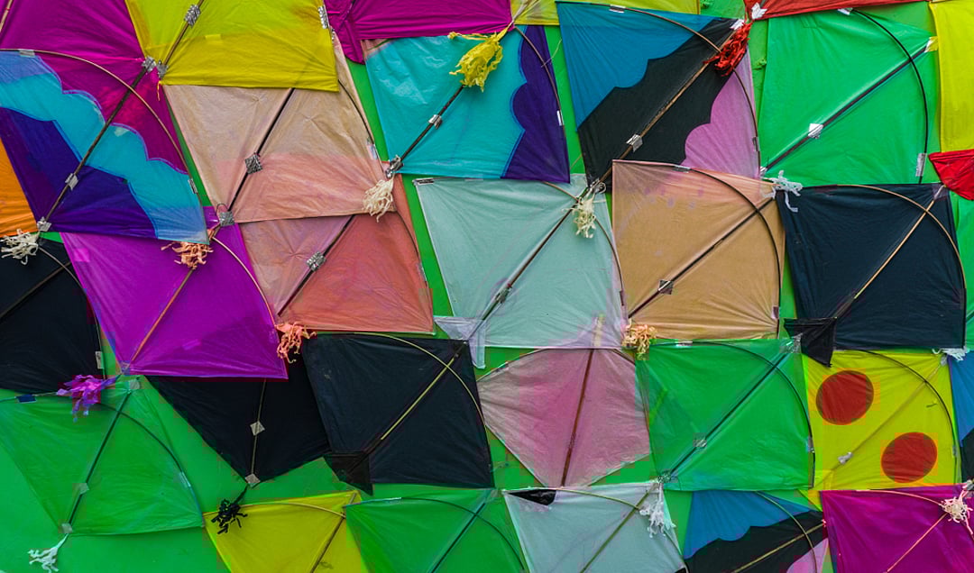 A melange of kites in a store Photo: Shutterstock/Vyas Abhishek
