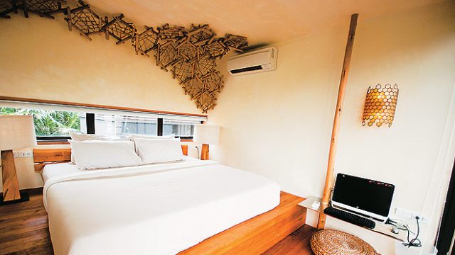 Tariff: THB 6,000 Tree Top Nest (double); THB 7,000 Bee Hive (for three), THB 7,000 Family Nest (for four), THB 7,000 View with a Room (double bed on the terrace); inclusive of taxes, a la carte breakfast, bicycles, Wi-Fi, cell phone with local Thai number and ice cream.