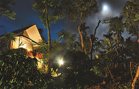 Grassroots offers 5 luxury Swiss tents with air-conditioning and hot water, open all through the year. Tariff for single or double occupancy with one child below eight and all meals is Rs 7,500 per night per tent from Monday to Thursday (Rs 6,000 from June to September) and Rs 8,250 per night Friday to Sunday (Rs 7,250 in the monsoon). Also, extra adult: Rs 2500; extra child: Rs 2,000 (9845891013; grassrootswayanad.in)