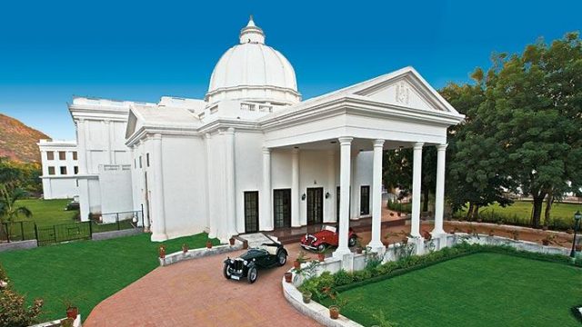 The domed lobby of the hotel feels spacious, with light streaming in from numerous windows. At the ground level, the main attraction is the pool and sit-outs around it. Indoor spaces like the restaurant, library and massage areas are all built around the pool. I learn that the family owns Ranjit Talkies next door — Bundi’s only cinema hall. We walk past vintage cars and bikes displayed outside the lobby as I am shown around the quaint little cinema with its red-and-blue chequered walls. Avijit is passionate about automobiles and as I climb up to the rooms, I notice how the walls bear the stamp of each family member’s hobby — Alka likes to collect miniatures, her son likes cars and Alka’s husband clearly loves wildlife. The Hadoti Palace has 28 rooms in all, including four suites — they all have an airy, well-lit character and look out either on to the fort or on to forestland.