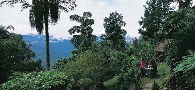 Tours of the nursery are usually led by Mahen. Scarlet wreaths of heliconia and bright golden birds-of-paradise light our way through the mist-enwreathed slopes, with tall palms and ornamental banana trees creating an enchanted-jungle atmosphere. Bromeliads with brilliant magenta hearts line the paths and in the greenhouse I was quite awestruck to encounter my first lady’s slipper orchid, a deep maroon beauty who posed for the camera like a film-star at a photo-op, complete with tiny tufts of hair growing along her two lateral petals!