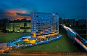 The gently curving arc of the main building is capped with glass curtain walls so that the corridors seem endless, even when you round the bend and have the end in sight. The swimming pool is large, but the eye imagines it as more expansive still because of the tiers of small pools ranked above it like a rapids, including the diminutive and darling kiddie pool. The separate convention block with 2,346 sq ft of conference space expands the entrance portico sideways. The Square restaurant seems more an oblong, and glass walls on either side seem to spill the seating on to the street on one side, and over the smoker-friendly verandah into the pool on the other. The pool bar seating edging past the loungers has more decorative pools edging it. The deli display is tall, tall, tall — sehr toll, as the Germans say, and trés French in its emphasis on great boulangerie and magnifique macarons (parent company Accor originates in France).