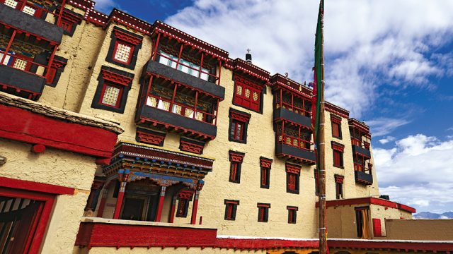 Within the palace, visit the royal kitchen and take part in impromptu cooking sessions. It’s a large space, a more lavish version of the traditional Ladakhi kitchen with its stone hearth with a chimney overlaid with gilded signs of the auspicious symbols and layered rows of copper utensils in which delicious fare is cooked every day. You could also just laze around at the ramparts of the palace, next to the small café, and watch the unending play of sunlight on the vast Indus Valley, as the mighty river moves past the distant Shey and Thikse gompas.