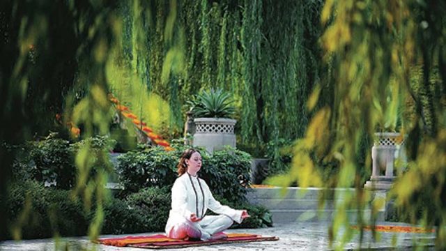 The lovely thing about Ananda is that it’s designed to make everything beautiful — the touch of the masseuse, the signature fragrance that floats in all the indoor spaces, the soothing music piped softly into every room, the maroon and orange colour scheme and the large windows which look out on banks of greenery.