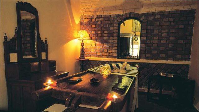 The dimly-lit spa where all the massaging and oiling takes place used to be stables for horses and cows; today, it’s satisfied clients who do the contented whinnying. Mine, for instance, was kneaded out of me by the able Indira from Thrissur, as she administered the most popular spa treatment, Abhyangam. A full-body massage with medicated oil chosen according to your constitution, it’s guaranteed to improve your circulation and plunge you a soporific swoon. Next up: a relaxing and apparently detoxifying soak in a warm herbal swill burbling around a jacuzzi.