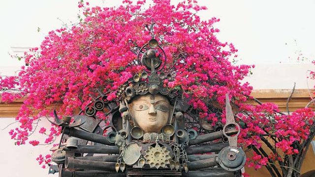 Khaprael Kothi, the primary art centre, lets the outdoors inside with natural light and airy breeze. It’s steeped in the creative spirit, from the works of art housed within to the very structure itself. Along with this, of course, is the radical use of installations wrought out of scrap material rescued by designer Narayan Chandra Sinha from the Railways, the family mines, and even shipping yards down south. Mindboggling! The complex also houses aesthetically done residences, exclusively for artists who participate to work in these inspirational spaces.