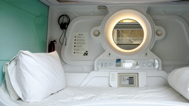 A charging point, two USB ports, a locker,a smoke detector and fire extinguisher, and a digital clock-calendar have all been elegantly accommodated. The brightness levels of the ceiling light, mirror light, and two reading lights can be adjusted with touch pads. One thing’s for sure—this is the fanciest bed I’ll ever sleep in (unless I score that one-way ticket to Mars).