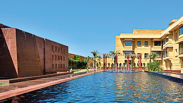 The sprawling 135-key property is designed along the lines of a palace, built in yellow sandstone as is the norm in the golden city. The décor is modern with elements of Rajasthan—an ancient carved wooden window was displayed on one wall. There was a dedicated play area for children. Therapies at the Quan Spa work wonders . I enjoyed a relaxing hot sand massage. Long strokes, poultices with hot sand over the aching parts and in 60 minutes I was in heaven. A herb garden is where private parties have been held. The Grand Ballroom works for weddings, conferences and other meetings.