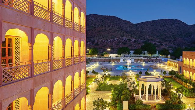 The sound of the nagadas is echoing in the valley, which is often the case in these parts. Except this time they seem to be getting amplified as my chariot (a chauffeur-driven Innova) takes a turn towards the grand stone entrance of the property. As if I wasn’t already feeling sheepish with this welcome, with perhaps just one foot out of the car, when the skies begin showering rose petals on me. Ah, but now I know for sure I am in Rajasthan. An ostentatious welcome befitting a land of erstwhile royals. Taj has always led the way in upping the ante in hospitality and this was just a glimpse of what they had in store for this trip with General Manager Nagendra Singh Hada leading his troops.