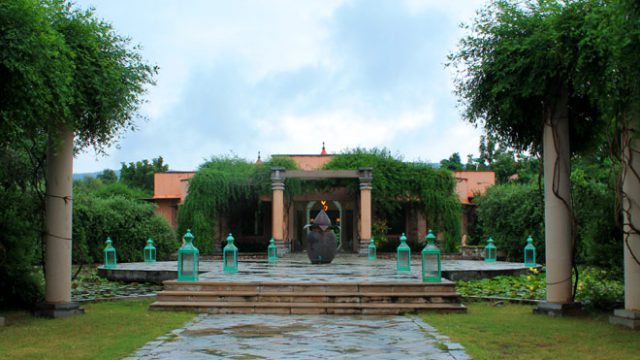 Nestled in a valley between two ridges of the primeval Aravali range, the resort is spread over a sprawling 7 acres of verdant land. Cheerful orange-coloured domes, beautifully manicured gardens dotted with fruit trees and flowers, the aesthetics of the property are inspired by a mix of nature and Rajasthani culture. Built using sandstone, lime and natural stones, the 13 luxury villas of the resort are named after different varieties of flowering trees common in India. The colour pattern of the interiors follow this theme as well.