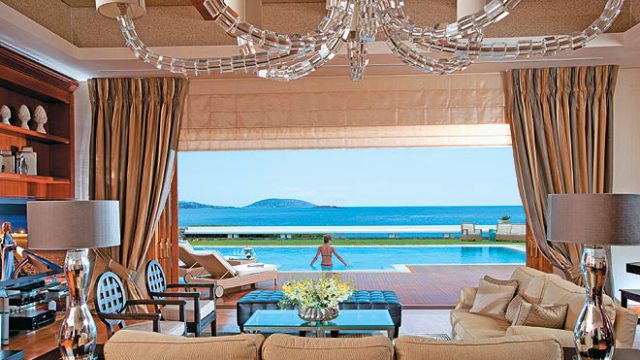 Grand Resort Lagonissi, Athens. Private butler, chef and pianist, private indoor pool as well as heated outdoor pool and gym, steam bath, massage room and private marina and beach nearby. $50,000/N;lagonissiresort.gr