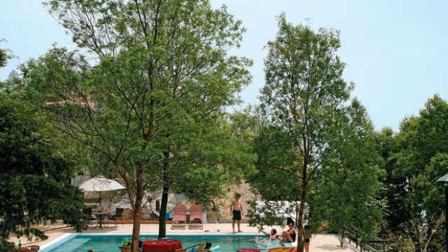 High Kumaon is one of the few Himalayan regions that teems with pretty lodges with pretty views. But which of them can boast of a swimming pool? Three-year-old Two Chimneys in Gethia village near Nainital, a restored former colonial bungalow, can do just that. In an earlier era it used to be a sanatorium, and its attributes as a curative space continue to charm and invigorate visitors. While away your time in the little nooks or the reading room, sun-bathe or swim up a generous appetite and enjoy delicious home-cooked spreads. Accommodation is in dissimilar, ridiculously charming rooms and cottages. What’s not to like? Contact twochimneysgethia.com
