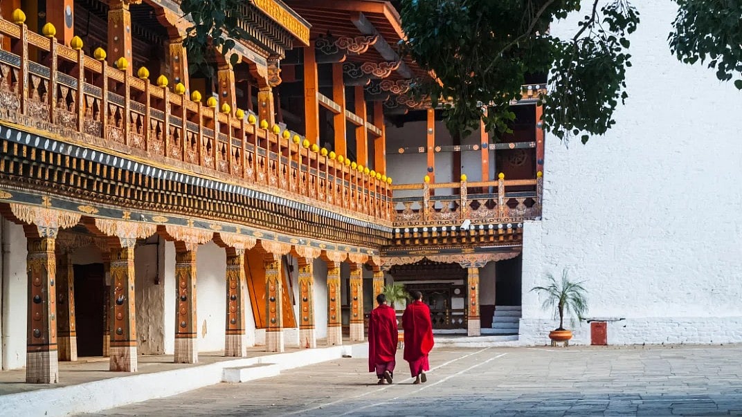 Two buddhist monks at Punakha Dzong, Bhutan