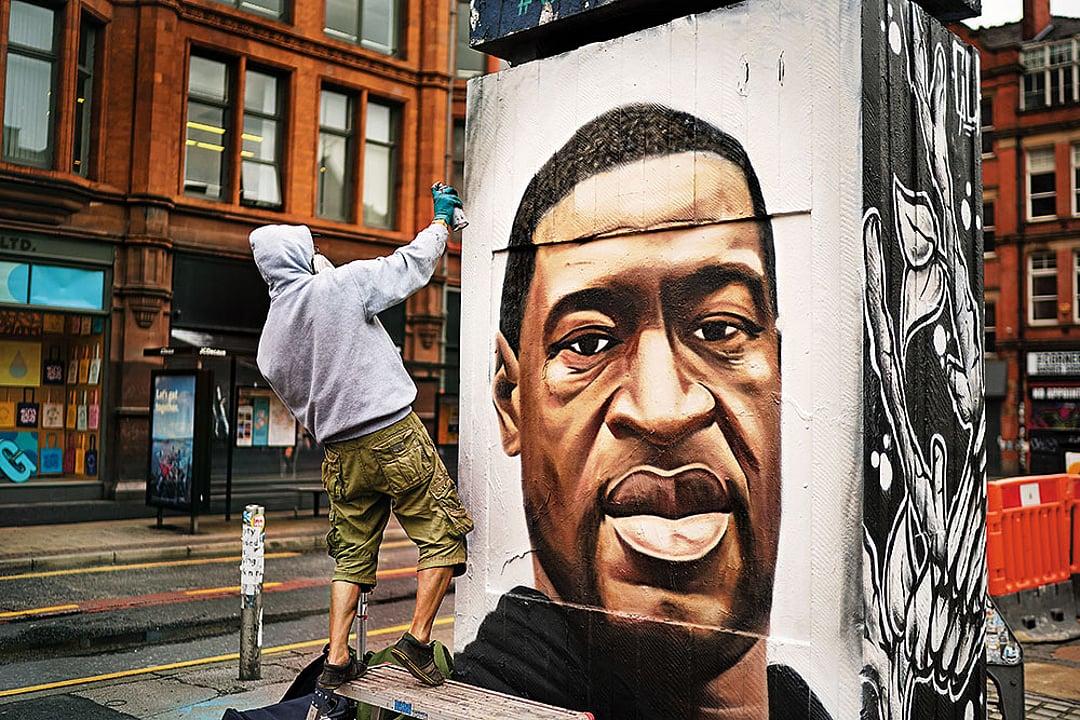 Artist Akse spray paints a mural of George Floyd Photo: Shutterstock