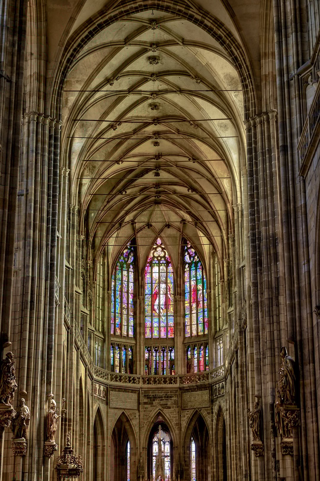 Interior architectural details and stained glass windows Prague Castle