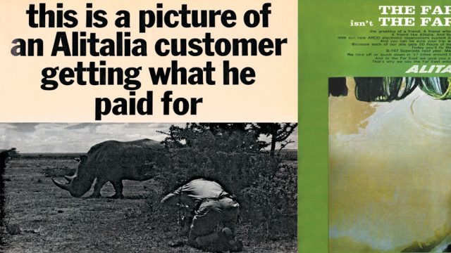 The heady Sixties were also heady days for aviation. Airlines were expanding their footprints rapidly across the globe and their advertising campaigns reflected this dutifully. In 1960, Alitalia, or Alitalia—Società Aerea Italiana to give it its full name, was recognised as Italy’s national carrier when it became the official airline for the Rome Olympics that summer. The same year, the airline got its first jets (DC-8 and Caravelle) and the number of passengers exceeded one million for the first time. In 1969, Alitalia became the first European airline to boast an all-jet fleet. These advertisements, which we unearthed from a couple of copies of Life magazine from the late 1960s, are brimming with inducements. The one which shows a rather picturesque silk factory in Bangkok prattles on about Alitalia’s new ARCO electronic reservations system and the fact that they take off or touch down in 97 cities around the world every two minutes daily. Those were clearly times when anything was possible. Especially when something as glamorous as an airline was involved. They could even guarantee rhino sightings. If Alitalia hadn’t been faced with bankruptcy three years ago (although they hope to be back in the black soon), we’re sure the writers in this issue could have used a little help with their tiger sightings.