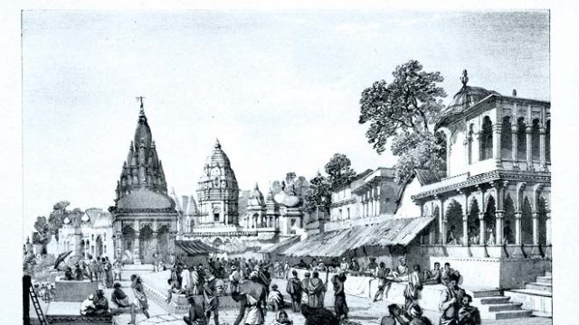 Returning to Calcutta in 1832, he soon became a leading India expert, primarily as a brilliant numismatist. He established a uniform coinage for India and reforming the Indian system of weights and measures. He then went and deciphered the ancient kharoshti script by studying coins of Indo-Greek rulers, and established the system of reading India’s history through the study of coins that is now prevalent. As the editor of the journal of the Asiatic Society, his crowning moment was the deciphering of the brahmi script of the Ashokan rock edicts, and associating them with the historical figure of Ashoka. His idea of a compilation of Indian historical inscriptions resulted one of the greatest corpus of inscriptions in the world, which essentially began the study of Indian history. He literally worked himself to death, falling ill in 1838, before passing away in London in 1840. A phenomenally talented man, he was a great draughtsman as well, and during his decade in Benaras, he drew some fascinating lithographs of the city ghats, including this one of the Dasaswamedh Ghat. His illustrations were collected and published as Benaras Illustrated in 1830. An elegant memorial to this remarkable man stands by the Hooghly in Kolkata.