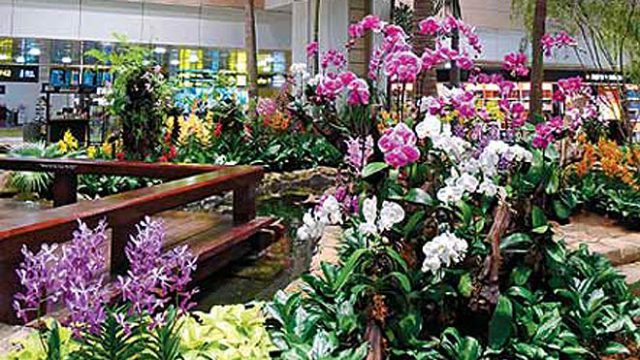 The winding pebble path through the bamboo to one side and the automated foot-massage unit tucked by the koi pond are extras — but the grass is already greener on my side of the sky when I spy the bank of nodding orchids, standing sentinel over the chair I aim for. Did you know Changi has its own eponymous Dendrobium species?