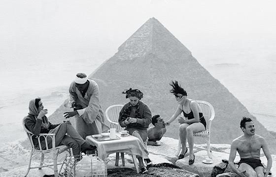 It has long been the custom for local Bedouins to guide well-paying European tourists up to the top of some of the smaller pyramids to see the sunset. However, this photo is unique in many ways. The most obvious fact is that the well-heeled and beautiful young men and women are having a picnic in the shadow of the Great Pyramid. And what’s more, they’re sun-bathing! In a way, they capture a different era, an innocence as well as wealthy easy living that the looming World War II would obliterate forever. Much water has flowed down the Nile since then…