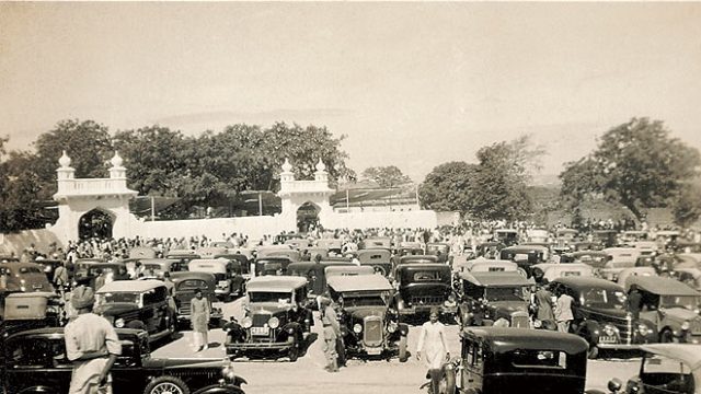 The night before Eid-ul-Fitr, on November 23rd 1938, my sister and I had mehendi on our hands. After a bath we had our hair dried with oudh ki dhuan. In the morning we dressed in new clothes, mojris and brocade topis and then set off early with my father to reach the Idgah near Mir Alam Talab by 10am. The grounds outside the wall of the Idgah were thronged with automobiles, and inside on the carpets in the shade of the qannats was a blur of strangers—and at least as many of my father’s friends.