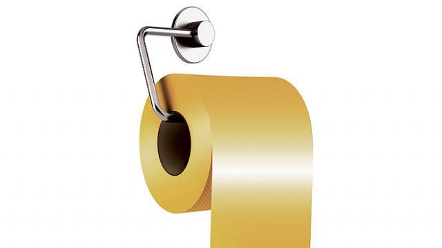 Australia’s Toilet Paper Man has produced one roll of 24-karat gold-lined 3-ply roll. Expect gold varq on your bum after use, and on the floor, apparently. Talk about gilding the lily! Your purchase is hand delivered, we hear, with a bottle of bubbly. A small token of appreciation only for a A$ 1,376,900 purchase. Oh but don’t let them fob you off with the inferior $1.3 million 22-carat one while you’re there! So passé. So two years ago, darling.