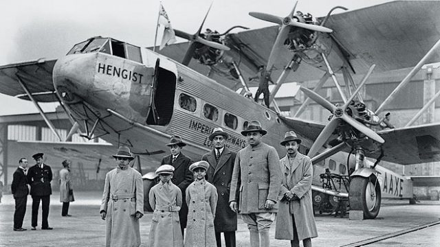 Time was when travel wasn’t about the bells and whistles. That you were travelling at all, for leisure, was enough to earn you the stripes. Of course, you had to be a maharaja and then you didn’t care about the stripes. Here, the maharaja of Jodhpur stands near his two sons, his brother Ajit Singh and other members of his entourage, before departing London on an Imperial Airways flight on a tour of Europe.