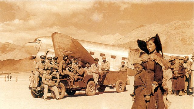 In photographs of these early landings Bactrian camels gaze stupefied at Jeeps, natty airmen gape at Ladakhi costumes. They are portraits of hope but also of bewilderment. And unintended consequences.