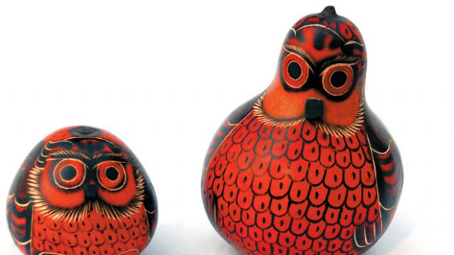 Wherever the tourist goes in Peru, she’ll find an ‘Indian Market’, packed with colourful fake textiles, jokey T-shirts (‘The Condor and the Cuys’; a motorcycling ‘Llamaha’ and so on), mass-produced pottery, little clay birds that make whistling noises and the ubiquitous woollens (“maybe alpaca” is the standard warning issued about all the sweaters purporting to be baby alpaca). The people of the Andes have fabulous crafts traditions — intricate and striking weaves, indigenous ceramics, truly fine traditional woollen clothing—but you’re not going to find any of these in the Indian markets. I resisted the lures of the markets, only to fall prey to these owls at Lima duty-free. I had fifty nuevos soles in my pocket and there were these owls — made of gourd, carved, dyed and painted — staring, well, owlishly at me. PEN 46 for mother and child.