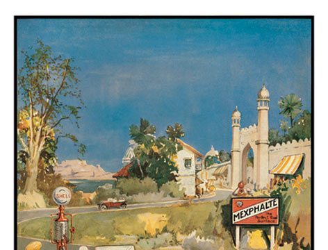 There isn’t very much information about this beautifully-coloured advertorial poster — not even when it was made, or by whom — but the context places it in the 1930s or ‘40s, by when the motor car was no longer an oddity on Indian roads. Asiatic Petroleum had joined hands with Burmah Oil Company to form Burmah-Shell, and car owners could expect to see petrol pumps by the roadside instead of relying on canned petrol. As for posters such as this one, they were something of a Shell speciality, and characteristic of their advertising. Over the years, they commissioned various artists to produce about 7,000 artworks that captured the spirit of motoring as it was then. No surprise, the Shell Advertising Art Collection is now prized by collectors as well as museums.