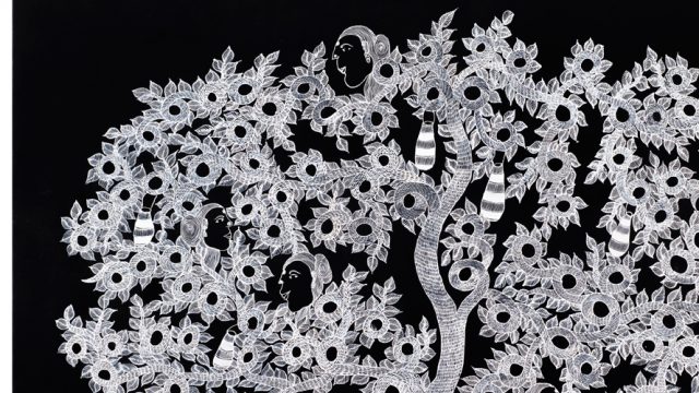 Two art galleries have come together to pull tribal art forms from the shadows of popular art flooding our social media feeds. Exhibit320 and Blueprint.12 are displaying a curation of warli, bhil and gond artists, all of whom are heirs of these styles- inheritors of art practiced by their families.